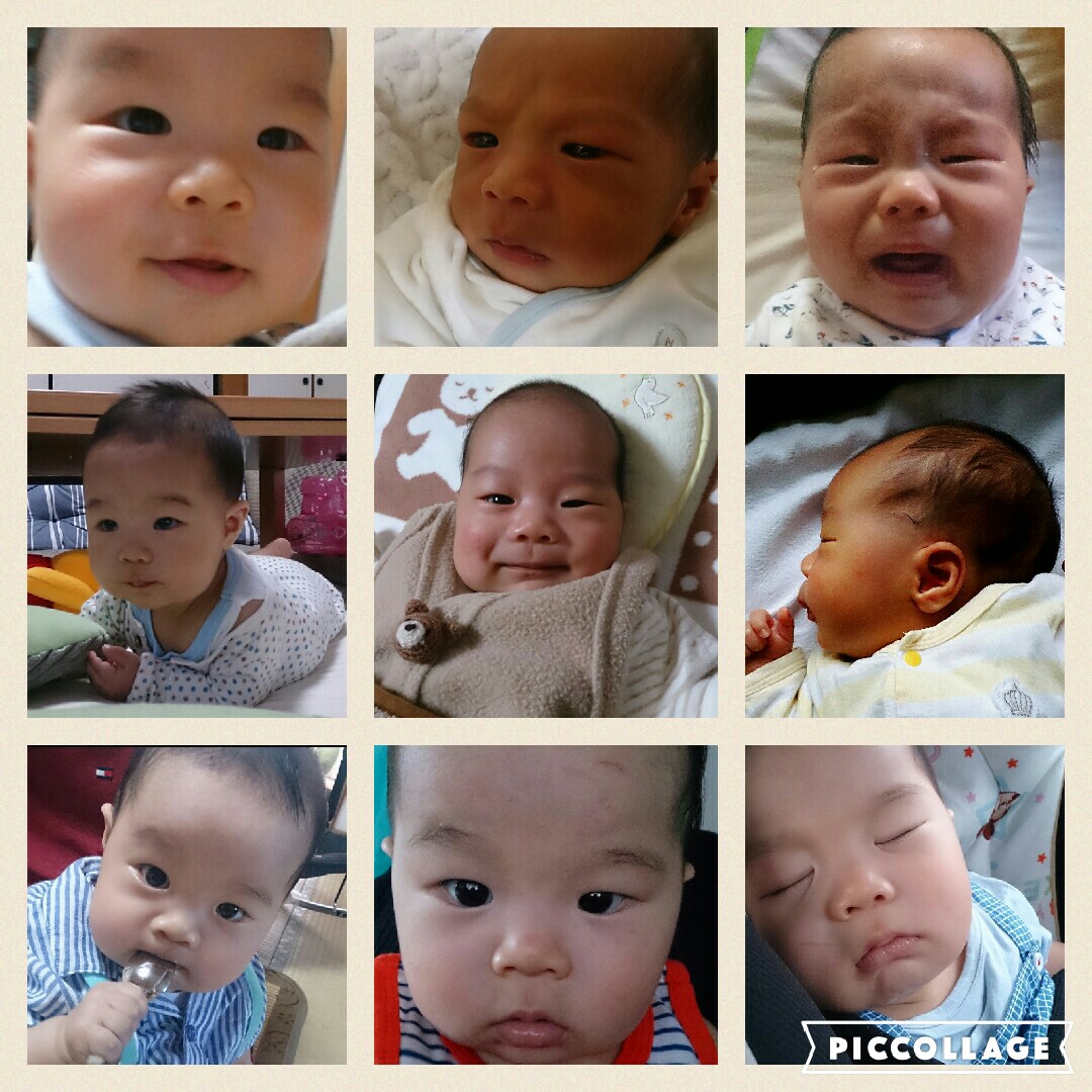 6か月頃までの写真です。 髪の毛は今だ少ないです。お父さんのせいです。